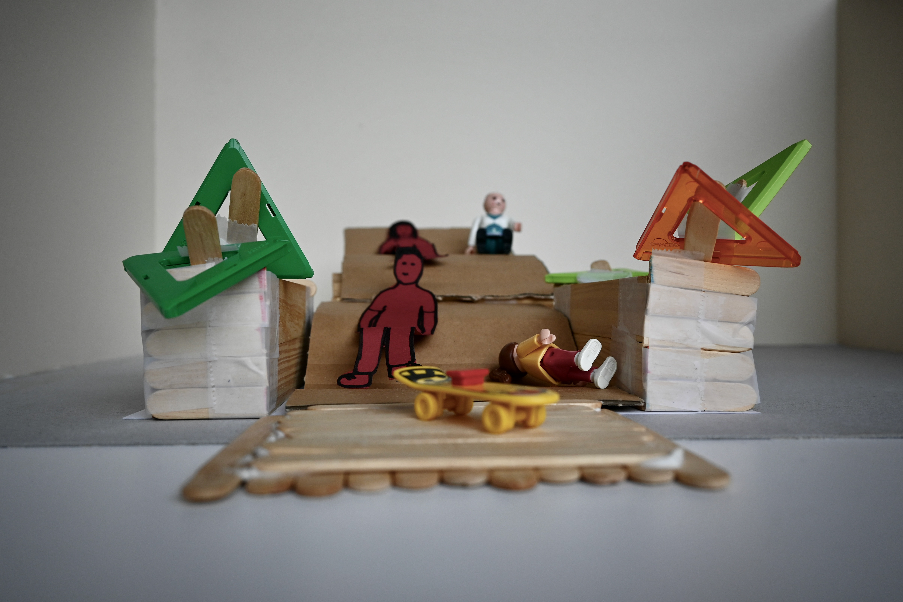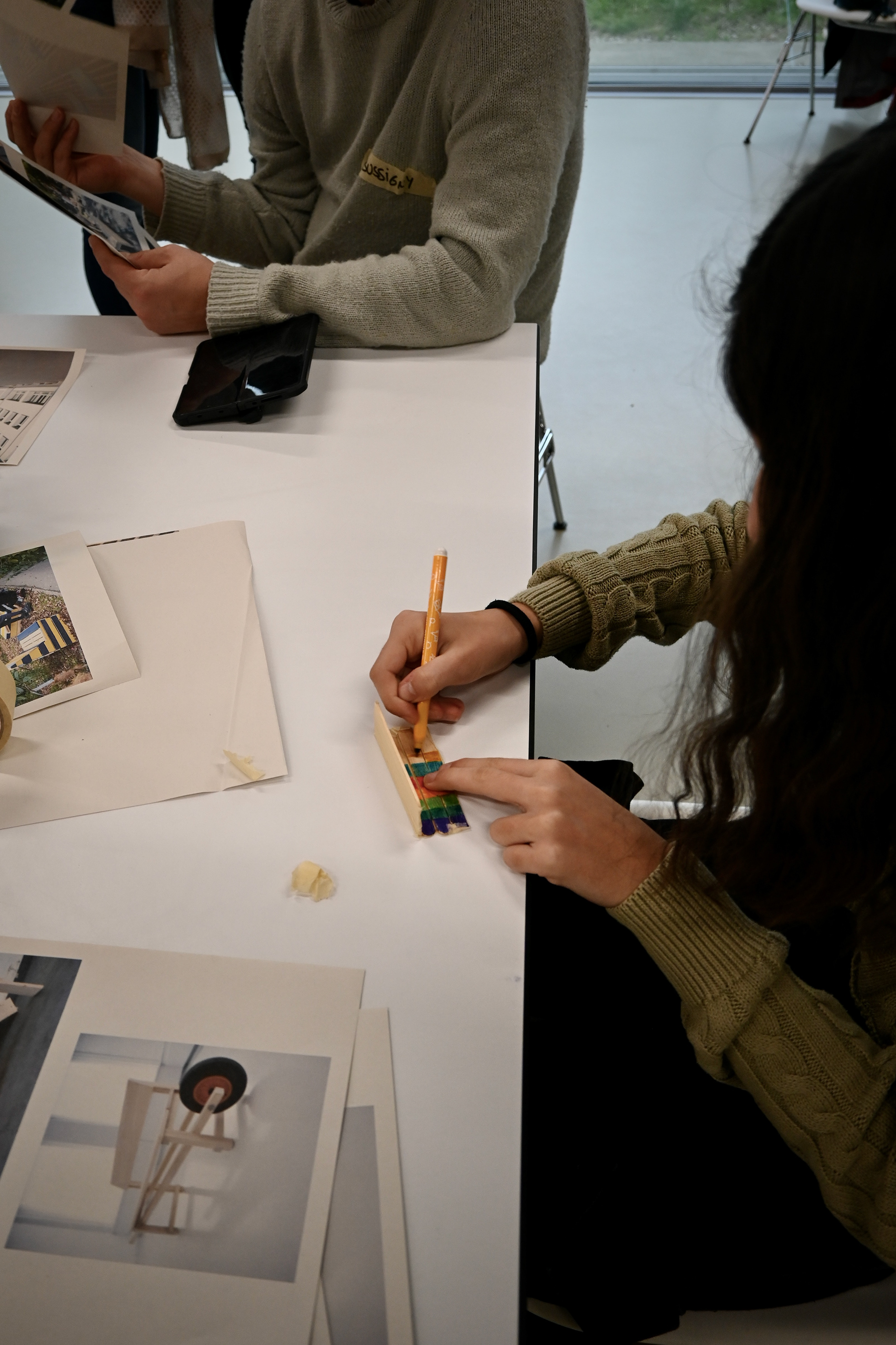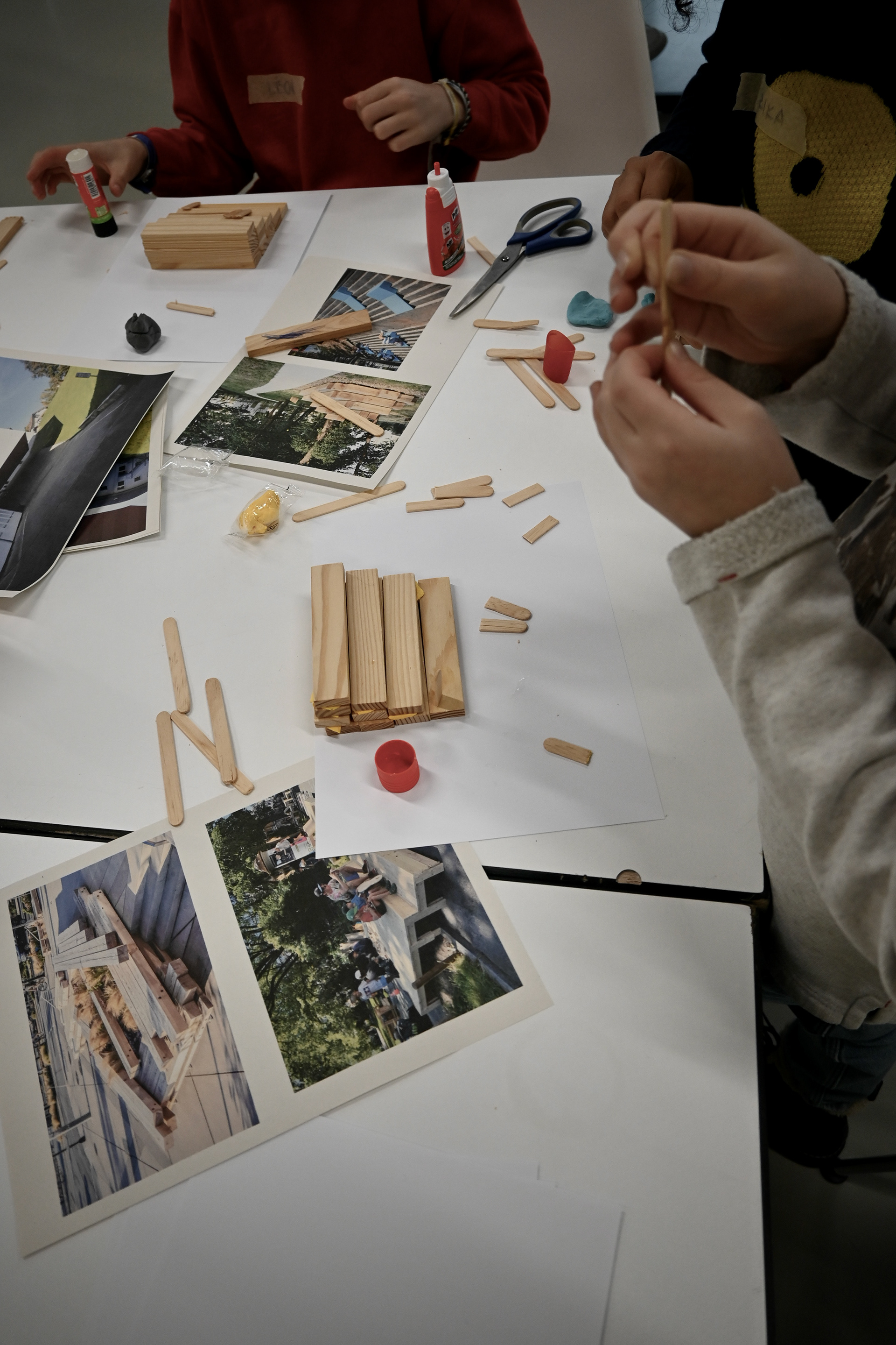 Un travail de diagnostic a d’abord permis de comprendre les habitudes et pratiques de chacun⸱e, ainsi que de mieux appréhender la spatialité du préau. Les premières esquisses et discussions ont permis d’identifier trois emplacements pour le futur banc dans la cour de l’école. Puis par groupes, les enfants ont réalisé des croquis, sculptures et maquettes pour imaginer leur banc idéal lors de deux ateliers de conception. Ceux-ci ont été enrichis par une présentation de Maya Cherix du groupe de recherche Préaux En Tous Genres visant à expliquer les problématiques d’occupation de l’espace liés au genre dans les cours d’écoles.